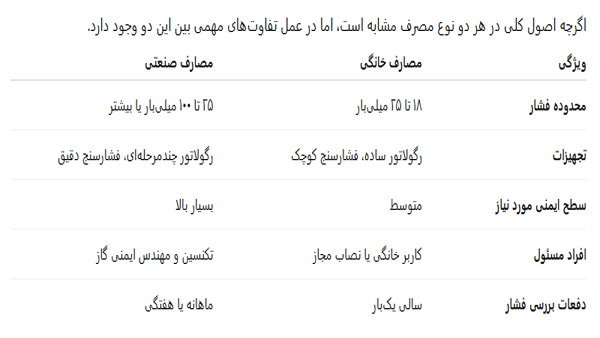 تفاوت تنظیم فشار گاز TL در مصارف خانگی و صنعتی