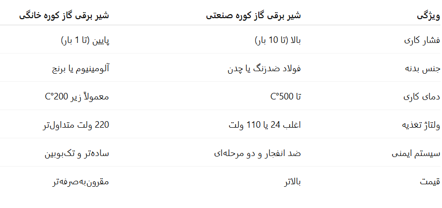 تفاوت بین شیر برقی گاز برای کوره صنعتی و کوره‌های خانگی